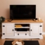Das IDIMEX Lowboard Tequila im Mexiko Stil ist eine elegante TV Bank, die in weiß/braun gehalten ist. Das Lowboard besteht aus massiver Kiefer und verfügt über 2 Fächer, 2 Türen und 1 Schublade, die ausreichend Stauraum für Zeitschriften, DVD's und Dekoration bieten. Mit den Maßen 140 x 61 x 46,5 cm (B x H x T) passt das Lowboard perfekt in Ihr Wohnzimmer. Die Zierbeschläge sind schwarz lackiert und verleihen dem TV-Schrank den letzten Schliff. Die natürliche Maserung des Holzes verleiht dem Lowboard ein angenehmes Flair.
