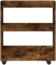 Dieser schmale Aufbewahrungswagen aus Holzwerkstoff in Räuchereiche ist eine praktische und dekorative Lösung für Ihr Zuhause. Mit seinen kompakten Abmessungen von 60 x 18 x 70 cm (B x T x H) bietet er viel Stauraum auf drei Etagen und ist ideal für die Organisation von Alltagsgegenständen. Dank der vier Lenkrollen, von denen zwei arretierbar sind, lässt sich der Wagen mühelos bewegen und bleibt stabil an seinem Platz.