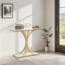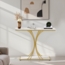 Der BarberPub Konsolentisch ist die perfekte Ergänzung für Ihren Eingangsbereich, das Wohnzimmer oder den Flur. Mit seinen eleganten goldenen Metallakzenten und der Tischplatte aus Kunstmarmor vereint er modernes Design mit Funktionalität. Der Tisch bietet ausreichend Platz für Bücher, Vasen und andere kleine Gegenstände und sorgt so für Ordnung und Stil in Ihrem Raum. Dank der soliden Konstruktion aus MDF und Metall ist er langlebig und stabil.