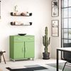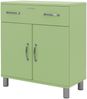 Ein Update für die Malibu Serie: Die bekannte Möbelserie Malibu aus dem Hause Tenzo, bleibt bei Ihrem Ursprungsdesign, inspiriert von 50´s American Cars, Beach & Surf und California. Frischen Wind in Look bringen die neuen Farben und das stylische Logo aus Metallbuchstaben. Zudem wurden die Schubladen noch stabiler verarbeitet, mit Softclose-System und Vollauszug ausgestattet und für den gesamten Schubladenschrank FSC-zertifiziertes Holz verwendet. Die vielen einzelnen Module in modernen Retro Farben können in einem Zimmer oder auch in der ganzen Wohnung, miteinander kombiniert werden. Die New Malibu Kommode 5127 auf vier Metallfüßen bietet hinter zwei Türen und der geräumigen Schubladen ausreichend Platz für alle Habseligkeiten, die nicht offen verstaut werden sollen. Ob als Solitär lässig an der Zimmerwand oder auch mit einem Bild oder Spiegel darüber, dieses geniale Möbel ist absolut kommod und ein wahres Raumwunder. Material Kommode: Ober- und Unterplatte aus MDF (FSC-zertifiziert) 25 mm lackiert, Seiten aus Spanplatte 19 mm lackiert melaminiert, Schubladenfront MDF 25 mm lackiert, Rückwand Hartfaserplatte Füße: Glanznickel Türgriff: Glanznickel Logo: Chromfarben Lieferumfang: 1 Sideboard, demontiert ( 1 Pakete ) Abmessungen Höhe: 92 cm Breite: 86 cm Tiefe: 41 cm Gewicht: 41 kg