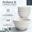 Traumhaftes skandinavisches Steingut Geschirrset für 4 Personen. Dieses 16-teilige Tafelservice in Hellgrau überzeugt durch elegantes Design mit dezenter Riffelstruktur. Hergestellt aus robustem Steingut, ist es langlebig und kratzfest. Das Set ist spülmaschinenfest und mikrowellengeeignet, ideal für den täglichen Gebrauch. Mit 4 großen Tellern, 4 kleinen Tellern, 4 Schüsseln und 4 tiefen Tellern ist es vollständig ausgestattet für stilvolle Mahlzeiten.