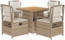 - Tischmaterial: PE-Rattan, pulverbeschichteter Stahl, massives Akazienholz mit Ölfinish