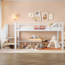 Das Hochbett mit Lattenrost bietet eine praktische Lösung für das Kinderzimmer. Mit einer Liegefläche von 90 x 200 cm und einem stabilen Metallgestell ist es ideal zum Spielen und Schlafen. Die Treppe und der umlaufende Rausfallschutz sorgen für Sicherheit, während der untere Bereich als Spielraum genutzt werden kann. Die maximale Belastbarkeit beträgt 110 kg und es ist für Kinder ab 6 Jahren geeignet.