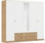 Der rauch Kleiderschrank GAMMA ist eine elegante und praktische Lösung für Ihr Schlafzimmer. Mit seinen fünf Türen, darunter eine Spiegeltür, und sechs Schubkästen bietet er optimalen Stauraum. Die Kombination aus Alpinweiß und Eiche Artisan verleiht dem Schrank ein modernes Design. Mit den Abmessungen von 226 x 210 x 54 cm und einer durchdachten Innenaufteilung ist er ideal für hängende und gefaltete Kleidung.