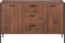 Klassisches Sideboard in dunklem Holzfarbton und Schwarz, ideal für jeden Einrichtungsstil. Mit 3 geräumigen Schubladen und 2 Schränken bietet es vielseitigen Stauraum für Kleidung, Dokumente oder Geschirr. Die Kombination aus braunfarbener Holzoptik und pulverbeschichtetem Metallgestell verleiht dem Möbelstück einen stilvollen Charme.