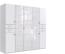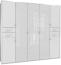 Drehtürenschrank „Danzig“ in Weiß mit Glastüren bietet mit seinen großzügigen Abmessungen von 225 x 208 x 58 cm reichlich Platz für Ihre Garderobe. Hergestellt aus hochwertiger Spanplatte E05, vereint er Funktionalität und Ästhetik. Mit 7 Türen, darunter 3 Glastüren, 4 Schubladen und 6 Einlegeböden, sowie zwei Kleiderstangen, erfüllt er höchste Ansprüche an Stauraum. Die schlichte Eleganz und das robuste Design machen „Danzig“ zum idealen Möbelstück für moderne Wohnräume.