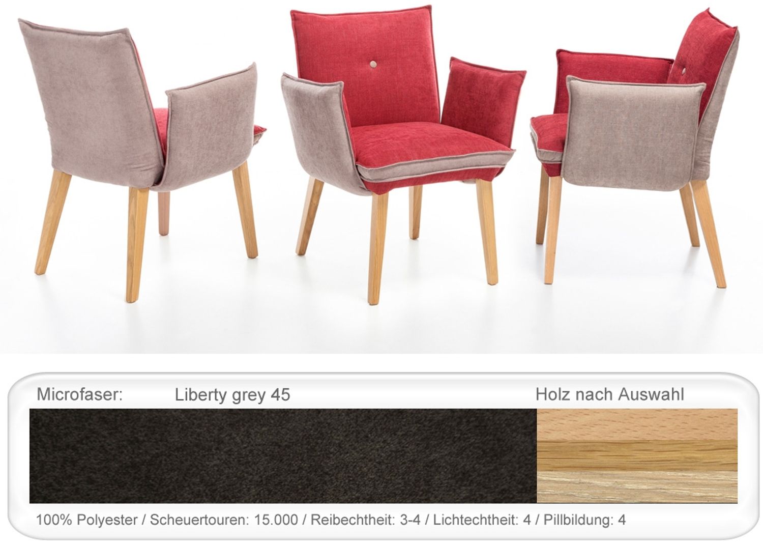 Der Polstersessel Gerit 1 im 4er-Set vereint Komfort und Stil. Mit einem Gestell aus Massivholz, wahlweise in Eiche bianco, bietet er eine hohe Standfestigkeit. Die Rückenlehne mit Knopf und der Kaltschaumsitz mit Wellenfederung sorgen für ein angenehmes Sitzgefühl. Ideal als Esszimmerstuhl, lässt sich der Sessel perfekt mit einer Polsterbank kombinieren.