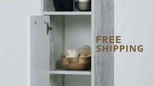 Lieferumfang1x Wandspiegel, 1x Waschtischunterschrank, 1x Hochschrank, 1x Montageanleitung, 1x Montagematerial