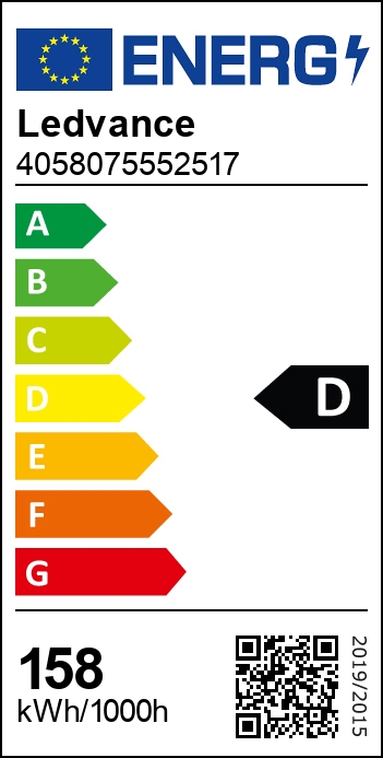 - Technische Daten: Nennspannung 240 V, Nennstrom 756 mA, Bemessungsleistung 158 W, Farbwiedergabe 70 CRI, Lebensdauer 10000 h, Schaltzyklen 100000, Farbe Weißaluminium, EAN: 4058075552517