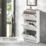 Praktischer Schuhkipper von Stella Trading in modernem Weiß. Mit den Abmessungen 59 x 103 x 17 cm (B/H/T) bietet er Platz für die Aufbewahrung von Schuhen in 3 Klappen und schafft zusätzlichen Raum auf dem geräumigen Oberboden für Dekoration. Die Montage ist dank der detaillierten Anleitung einfach und schnell durchzuführen.