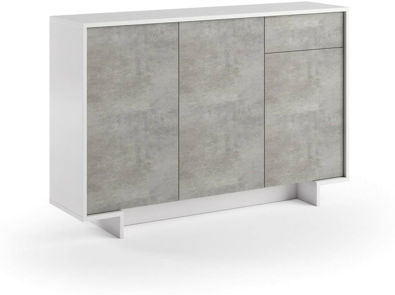 SIDEBOARD - Wohnzimmer-Sideboard, Wohnzimmer-Buffet mit 3 Türen und 1 Schublade, MADE IN ITALY, 134 x 35 x 87 cm, Weiß und Zement. AUFBAU UND NUTZUNG - Praktische und platzsparende Wohnzimmermöbel mit drei Flügeltüren und einer Schublade - Türen und Schubladen haben keine Griffe, beide sind mit starken Scharnieren und Metallführungen ausgestattet - Die obere Ablage macht dieses Sideboard zu einem TV-Schrank, in dem Sie alles aufbewahren können Ihre Lieblingsornamente - Dieses vielseitige Möbelstück eignet sich perfekt zur Dekoration des Esszimmers, Wohnzimmers, Flurs, Eingangsbereichs oder Büros, indem es Geschirr, Gläser, Tischdecken, Besteck, Bücher, Dokumente oder Dekorationsgegenstände ordentlich unterbringt. MADE IN ITALY - Der Artikel wird in Italien hergestellt, unter Verwendung der besten Materialien und höchster Qualität und Liebe zum Detail - Die Sorgfalt der Produktionsprozesse steht für Zuverlässigkeit, Widerstandsfähigkeit und Raffinesse - Die Zertifizierung Made in Italy ist eine umfassende Garantie Einhaltung der Vorschriften der Europäischen Union. TECHNISCHE EIGENSCHAFTEN - Vollständig aus melaminharzbeschichteten Spanplatten gefertigt, stoß- und kratzfest sowie langlebig - Ausgestattet mit Flügeltüren mit Push-Pull-Schließsystem - Schnelle und einfache Reinigung dank des Materials, aus dem es gefertigt ist - Lieferung zerlegt mit Bausatz und Montageanleitungsheft - Besondere Sorgfalt und Aufmerksamkeit bei der Verpackung, widerstandsfähig und für den Transport geeignet - FSC-zertifizierte Melaminplatte, die Dicke von 18 mm garantiert eine hohe Widerstandsfähigkeit der Materialien, ein hohes ästhetisches Ergebnis dank der sehr hochauflösenden Verarbeitung - Maximal zulässiges Gewicht für jedes Regal: 10 kg. ABMESSUNGEN IN CM, Sideboard: Länge: 134 Breite: 35 Höhe: 87
