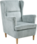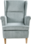 Gemütlicher Ohrensessel ABSON in Hellblau mit eleganter Ausstrahlung. Die komfortablen Ausbuchtungen an der Rückenlehne, abgerundeten Armlehnen und die dicke Polsterung sorgen für höchsten Komfort und laden zum Entspannen ein. Der Retro-Stil und die warme Farbe machen ihn zu einem idealen Begleiter für klassische Einrichtungsstile.
