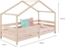 Das IDIMEX Kinderbett RENA ist ein ideales Hausbett für Ihr Kind, das Spiel, Spaß und Fantasie fördert. Mit einer Liegefläche von 90 x 200 cm und einem integrierten Rausfallschutz bietet es Sicherheit und Geborgenheit. Die bodennahe Konstruktion nach Montessori ermöglicht es Ihrem Kind, selbstständig ein- und auszusteigen. Das Bett ist aus massiver Kiefer gefertigt und in natur lackiert, wobei die natürliche Maserung des Holzes sichtbar bleibt.