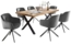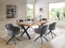 Entdecken Sie das Esszimmer-Set CAPRI-X, das Eleganz und Funktionalität vereint. Der Esstisch aus hochwertiger, geölter Eiche mit den Maßen 180x100 cm bietet ausreichend Platz für gesellige Abende. Das moderne X-Gestell aus robustem, pulverbeschichtetem Metall in Schwarz sorgt für Stabilität und einen ansprechenden Industrial Look. Die drehbaren Armlehnstühle bieten mit einer Sitzhöhe von 50 cm und einer Belastbarkeit von 120 kg optimalen Sitzkomfort.