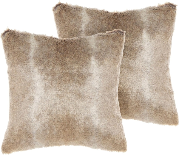 Kissen 2er Set Ohne Muster HORDEUM Webpelz 45 x 45 cm Hellbraun