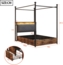 Das Merax Eiseneinzelbett ist ein multifunktionales Jugendbett in der Größe 90x190 cm, das sich durch abnehmbare Bettpfosten, integrierte LED-Beleuchtung und USB-/Typ-C-Ladeanschlüsse auszeichnet. Mit zwei praktischen Schubladen bietet es zusätzlichen Stauraum. Der robuste Metallrahmen und die gepolsterte Rückenlehne sorgen für Komfort und Langlebigkeit. Das elegante Design kombiniert schwarze Metallakzente mit warmer Holzmaserung und passt sich verschiedenen Raumästhetiken an.