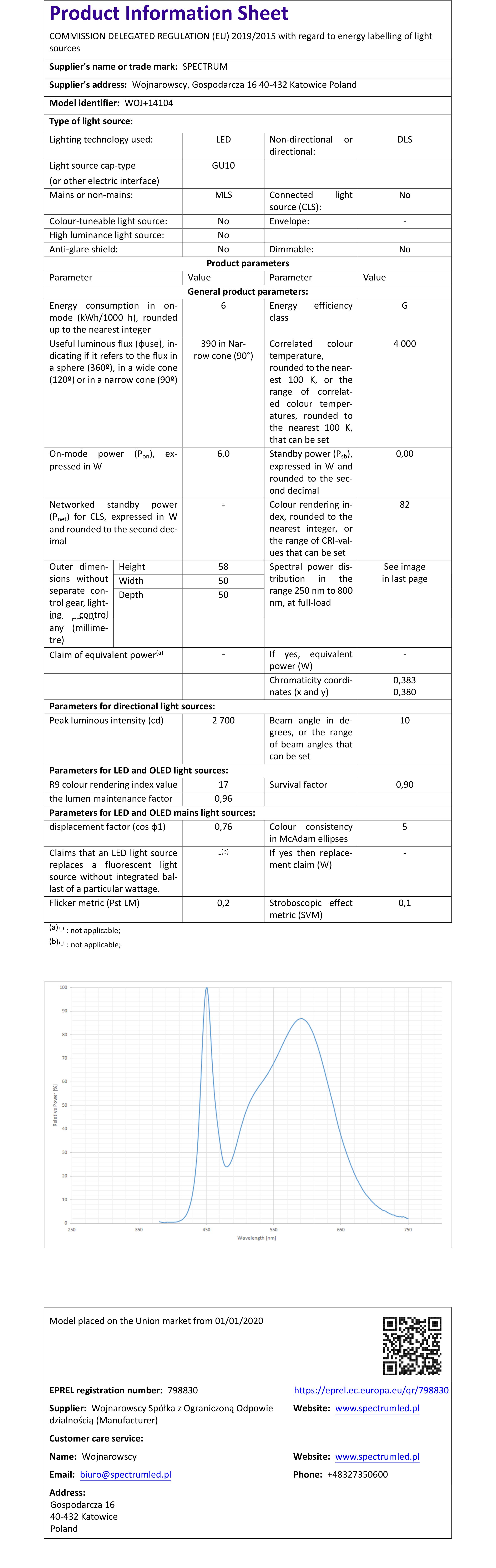 Die LED GU10 6W 230V AC bietet eine helle und energieeffiziente Beleuchtung mit einem Lichtstrom von 480 Lumen und einer neutralweißen Lichtfarbe von 4000 K. Mit einem Abstrahlwinkel von 10° eignet sie sich ideal für gezielte Beleuchtung. Die Bauform ist GU10 GU5.3 und die Lampe ist nicht dimmbar. Sie ist für Betriebstemperaturen von -20 °C bis 40 °C geeignet.
