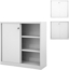 Der BISLEY ECO Schiebetürenschrank aus Metall in lichtgrau bietet eine platzsparende Lösung für Ihre Aufbewahrungsbedürfnisse. Mit einer Höhe von 118,1 cm, einer Breite von 120 cm und einer Tiefe von 43 cm ist er ideal für kleine Räume. Der Schrank verfügt über abschließbare, geräuscharm laufende Schiebetüren und zwei Fachböden, die Platz für drei Ordnerhöhen bieten. Er ist bereits montiert und sorgt mit höhenverstellbaren Standfüßen für einen stabilen Stand.
