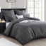 Bettwäsche 200x200 3tlg Anthrazit Gitter Muster Mikrofaser Reißverschluss