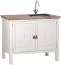 MiaMöbel Mexico Spülmodul "Old White" ist ein stilvolles Küchenmodul aus massivem Pinenholz im charmanten Landhausstil. Es bietet ausreichend Platz für eine große Spüle mit Abtropfbereich und verfügt über zwei Kassettentüren mit schmiedeeisernen Griffen. Der offene Bereich ermöglicht einen einfachen Anschluss von Becken und Armatur. Der Shabby Look wird durch künstliche Gebrauchsspuren und handgeschmiedete Beschläge betont.
