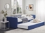 Das ausziehbare Tagesbett LIBOURNE in Marineblau mit Leinenoptik ist ein elegantes und praktisches Möbelstück für Kinder- oder Gästezimmer. Die Polsterung mit Knopfverzierung verleiht dem Bett eine edle Note. Mit einer Liegefläche von 90x200 cm und einem stabilen Gestell ist es ideal für den täglichen Gebrauch.