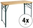Durch Scharniere auf der Unterseite und stabile, klappbare Stahlgestelle wird der Auf- und Abbau zu einem echten Kinderspiel. Bei Nichtgebrauch oder zum Transport lässt sich der Tisch auch leicht und platzsparend wieder verstauen.