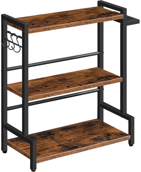 Gewürzregal Küchenregal mit 3 Haken Verstellbare Füße Dunkelbraun-Schwarz Bild 1