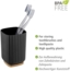 Der WENKO Zahnputzbecher Rotello vereint modernes Design mit natürlichen Elementen. Mit einem Durchmesser von 8,6 cm und einer Höhe von 11,1 cm bietet er ausreichend Platz für Zahnbürsten und Zahnputzcreme. Der schwarze Behälter aus Polystyrol harmoniert perfekt mit dem Boden aus hellem Bambus. Die schlichte Rillen-Struktur sorgt für einen sicheren Halt. Ideal auch zur Aufbewahrung von Kosmetikpinseln oder anderen länglichen Utensilien.
