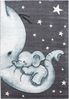 Kinder Teppich Kikki rechteckig in Blau, 140x200 cm. Dieser Kinderteppich aus der Türkei besticht durch sein niedliches Elefant-Design. Mit einer Höhe von 11 mm ist er pflegeleicht und robust. Hergestellt aus 100% Polypropylen, maschinell gewebt und mit einer langlebigen Jute-Rückseite. Ideal für Kinderzimmer!