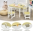Das 4-teilige Tisch- und Stuhl-Set für Kinder ist ideal für Kleinkinder und bietet eine praktische 2 in 1 Lösung. Hergestellt aus Kiefernholz und MDF, vereint es Funktionalität und ansprechendes Design in Natur und Weiß. Der Tisch hat die Maße 70 x 48 x 51 cm, während die Stühle 25,5 x 25,5 x 54,5 cm und die Bank 58,5 x 26,5 x 53,5 cm misst. Die Tragkraft beträgt bis zu 50 kg für den Tisch und die Stühle sowie 80 kg für die Bank.
