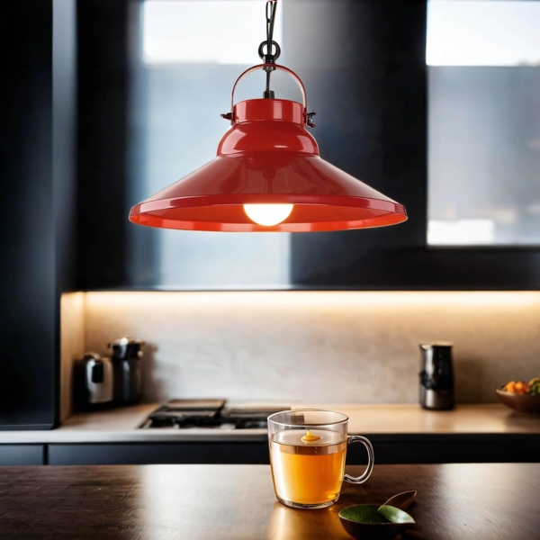 - Knallige Hängeleuchte in Rot für verschiedene Räume