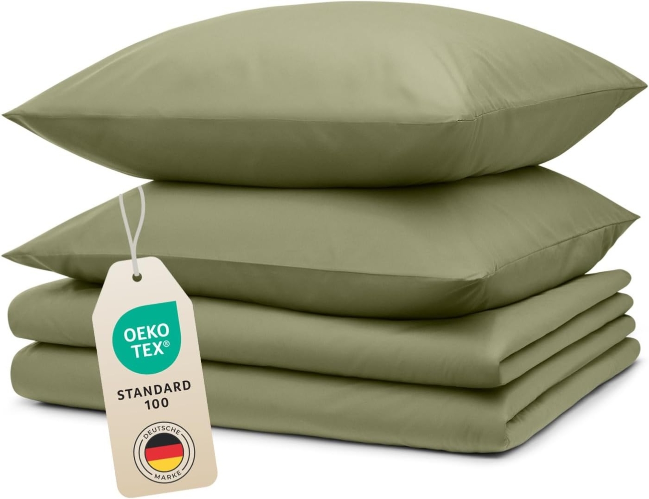 Blumtal Bettwäsche 135x200 4teilig - aus Atmungsaktivem Mikrofaser - 2X Bettbezug 135x200 cm + 2X Kissenbezüge 80x80 cm - Superweiches Bettwäsche-Set, Oeko-Tex Zertifiziert - Olive Grün