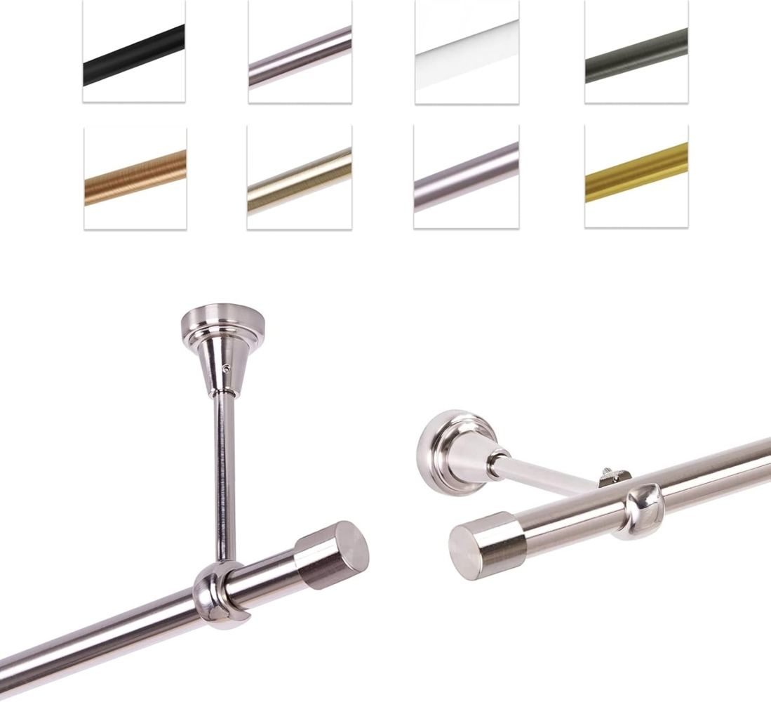 MDEKOR Gardinenstange Vorhangstange 19mm, 1-läufig, kürzbar, 1-läufig Wand oder Deckenmontage, 120 cm Edelstahl