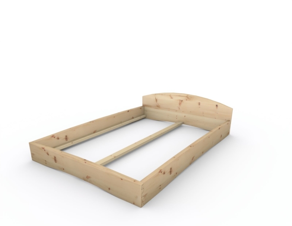 Zirbenbett Massivholzbett "Rosi" metallfrei 140 x 200 cm 20 cm mit Kopfteil