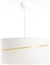 Hängeleuchte SWING aus Velours auf PVC-Basis in Weiß und Gold. Mit einer Höhe von 107 cm und einem Durchmesser von 50 cm bietet sie eine dimmbare Lichtquelle (1xE27, max. 60W). Die Kombination aus feinem Veloursstoff und asymmetrischem Design sorgt für eine angenehme Lichtverteilung und eine gemütliche Atmosphäre. Ideal für verschiedene Innenraumstile.