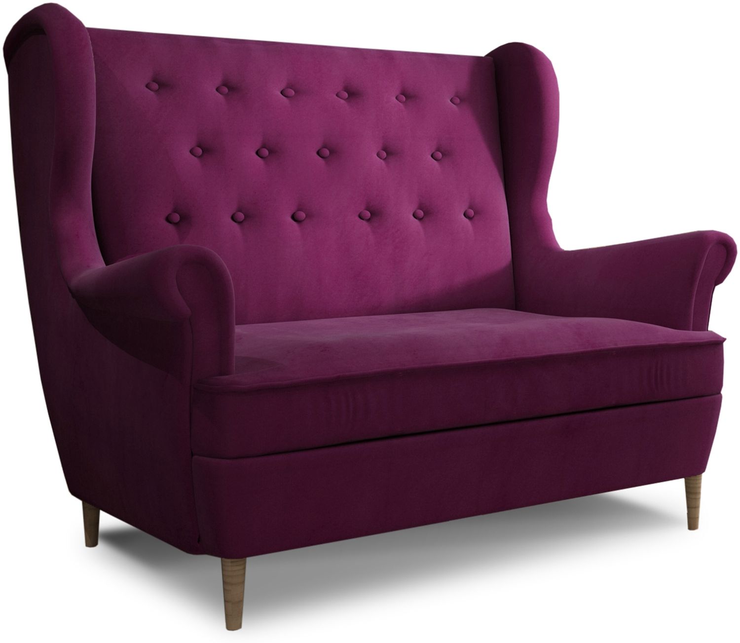 Aros ist ein stilvolles Sofa mit den Abmessungen 150 x 90 x 103 cm, das durch sein originelles Retro-Design besticht. Der außergewöhnliche Komfort wird durch die Polsterung der Sitzfläche aus Wellenfedern und T3030-Schaumstoff gewährleistet. Dekorative Steppungen und Nähte am Kopfteil sowie hohe gedrechselte Holzfüße und hohe Armlehnen runden das ansprechende Gesamtbild ab. Aros ist die perfekte Bereicherung für jede Wohnung.