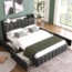 Einzelbett 160 × 200 cm mit Steckdosen,USB-Anschlüssen und LED-Beleuchtung,4 Schubladen,Leinenbezug in Grau Bild 1