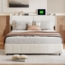 Dieses Polsterbett in der Größe 160 x 200 cm bietet Ihnen nicht nur einen komfortablen Schlafplatz, sondern auch praktische Funktionen. Mit einem integrierten USB-Ladeanschluss und 4 Schubladen unter dem Bett für zusätzlichen Stauraum ist es ideal für moderne Wohnräume. Die LED-Beleuchtung lässt sich bequem per Fernbedienung steuern. Der Bezug aus hochwertigem Kunstleder sorgt für eine stilvolle Optik und ist leicht zu reinigen.