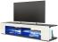 Vladon Lowboard Movie, TV-Kommode mit 4 offenen Fächern und Zierleisten, Schwarz matt/Creme Hochglanz, inkl. LED-Beleuchtung blau (134 x 29 x 39 cm)