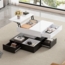 Couchtisch 70x70x40 cm bis 55 cm höhenverstellbar, Quadratische Hochglanzplatte Schwarz-Weiß, 3 Schubladen