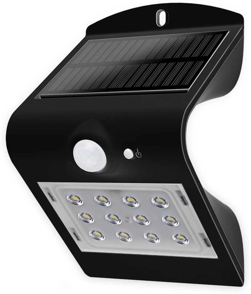 Moderne Solar-LED Wandleuchte BLULAXA 48873 in Schwarz mit einem leistungsstarken 1,5 W LED-Modul. Diese Leuchte bietet zwei Modi für optimale Beleuchtung bei Dunkelheit, gesteuert durch einen integrierten PIR-Bewegungsmelder mit einem Erfassungsbereich von bis zu 6 m. Der austauschbare Li-Ion Akku sorgt für eine Leuchtdauer von bis zu 8 Stunden. Mit einem eleganten Design und einer Schutzart von IP65 ist diese Wandleuchte ideal für den Außenbereich.