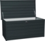 Die Duramax Palladium Kissenbox aus Metall XL bietet mit einer Kapazität von 1043 l und robustem, feuerverzinktem Stahl eine ideale Lösung zur Aufbewahrung Ihrer Gartenmöbel und -accessoires. Die Box ist allwetterbeständig und verfügt über einen hydraulischen Gasdruckfedermechanismus, der das Öffnen und Schließen des Deckels erleichtert. Ein abschließbarer Griff mit Schlüssel sorgt für zusätzliche Sicherheit.