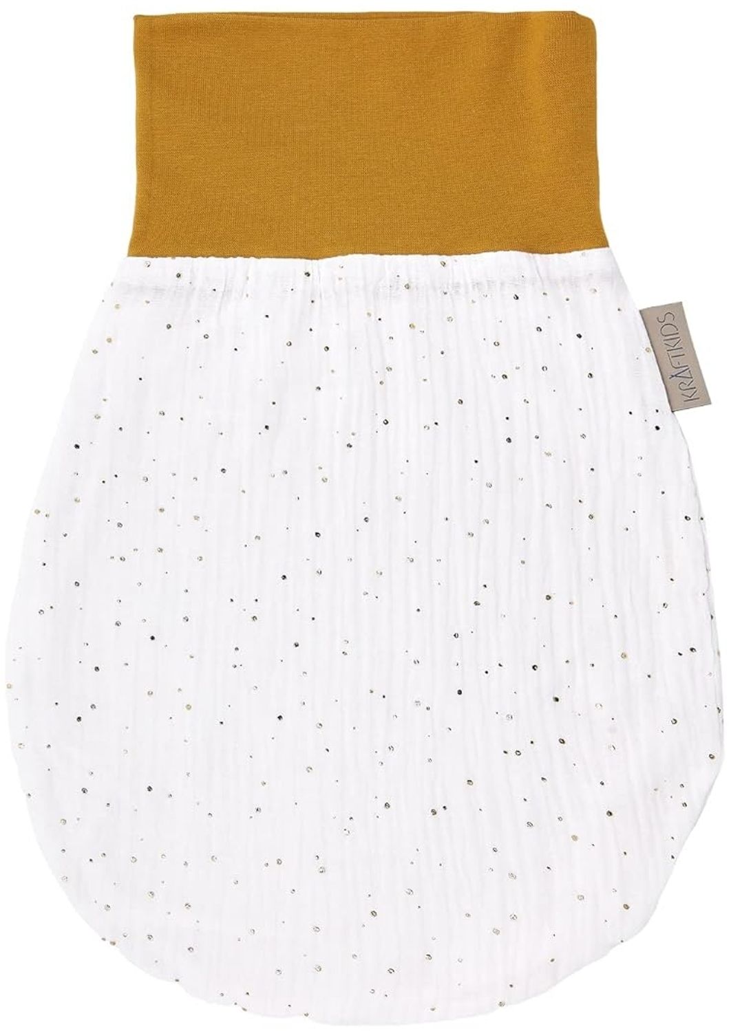 Der KraftKids Strampelsack aus Musselin mit goldenen Punkten auf Weiß ist der ideale Begleiter für den Frühling und Sommer. Hergestellt aus 100 % Baumwolle, bietet er ein geschmeidiges Hautgefühl und schont die empfindliche Haut Ihres Kindes. Der Schlafsack ist pflegeleicht und kann bei bis zu 40 Grad in der Waschmaschine gewaschen werden. Handgefertigt in der EU, vereint er zeitloses Design mit hoher Qualität. Erhältlich in drei Größen, eignet er sich für Kinder bis zu 18 Monaten.