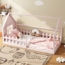 Dieses charmante Kinderbett in Hausform (90x200 cm) aus Kiefernholz und MDF bietet einen kreativen und gemütlichen Schlafplatz für Ihr Kind. Mit einer stabilen Konstruktion und einem sanften rosa Farbschema fügt es sich harmonisch in jedes Kinderzimmer ein. Die durchdachte Gestaltung fördert die Fantasie und sorgt für Sicherheit und Komfort. Dank der klaren Montageanleitung ist der Aufbau schnell und unkompliziert.