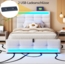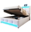 Das REDOM Polsterbett vereint elegantes Design mit praktischen Funktionen. Mit USB-Anschlüssen zum bequemen Laden Ihrer Geräte und einem hydraulischen Stauraum für Bettwäsche und persönliche Gegenstände bietet es sowohl Komfort als auch Platzersparnis. Das verstellbare Kopfteil passt sich verschiedenen Matratzendicken an und sorgt für ergonomische Unterstützung. Die RGB-LED-Lichtstreifen ermöglichen eine individuelle Anpassung der Beleuchtung.