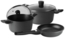 Die Töpfe haben eine Wanddicke von 2 mm und einen Boden von 4 mm, was für eine gute Stabilität und Langlebigkeit sorgt. Der größere Topf hat einen Durchmesser von 24 cm und eine Höhe von 11,5 cm, während der kleinere Topf einen Durchmesser von 20 cm und eine Höhe von 10 cm hat. Die Pfanne hat einen Durchmesser von 24 cm und eine Höhe von 5,5 cm.