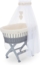 FabiMax Stubenwagen Grau lackiert, 2 in 1 Musselin / Waffelpiqué Komplettset Creme mit Decke und Kissen