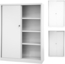 Der BISLEY ECO Schiebetürenschrank aus Metall in verkehrsweiß bietet eine praktische und platzsparende Lösung für Ihre Aufbewahrungsbedürfnisse. Mit einer Höhe von 163,7 cm, einer Breite von 120 cm und einer Tiefe von 43 cm ist er ideal für kleine Räume. Der Schrank verfügt über abschließbare, geräuscharm laufende Schiebetüren und drei Fachböden, die Platz für bis zu vier Ordnerhöhen bieten.