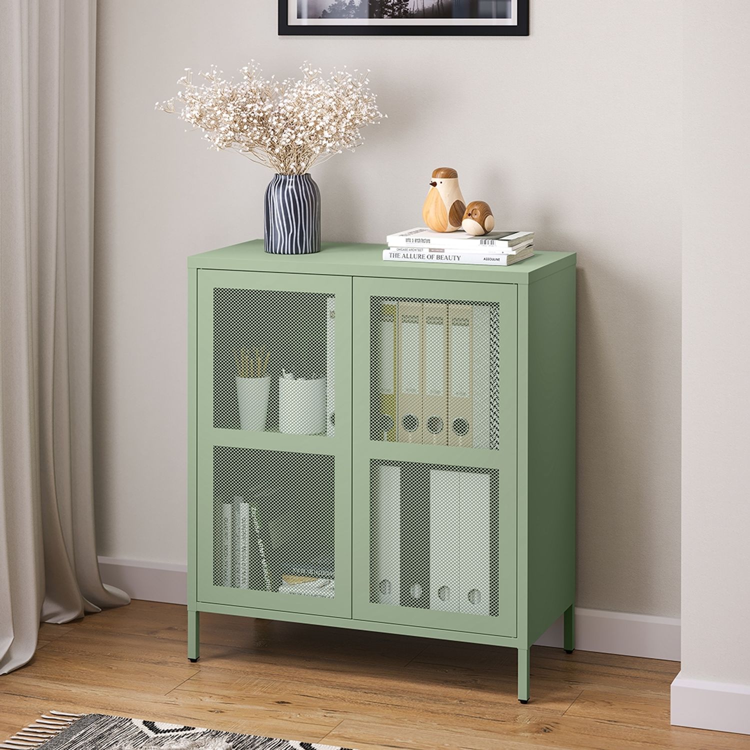 skølm 'Zephyr' Kommode, Metall, grün, Metallschrank mit zwei Fächern, 92x80x30 cm, inkl. Push-to-Open
