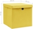 Stilvolle Aufbewahrungsboxen in Gelb, 4 Stück, aus umweltfreundlichem Vliesstoff. Mit den Abmessungen 28 x 28 x 28 cm bieten sie ausreichend Platz für Schals, Socken und Unterwäsche. Die Boxen sind langlebig und platzsparend zusammenklappbar. Jede Box verfügt über eine praktische Metallöse für einfaches Herausziehen, während die Deckel Ihre Sachen sauber und staubfrei halten.